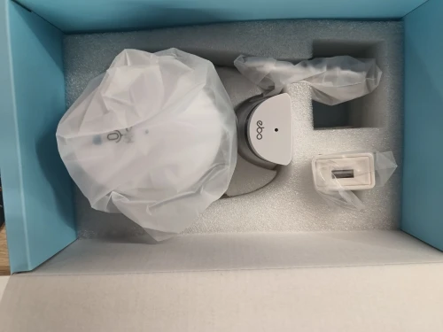 Packe dein Enabot EBO SE aus und drücke den Einschaltknopf, um deine smarte mobile Kamera zu starten.