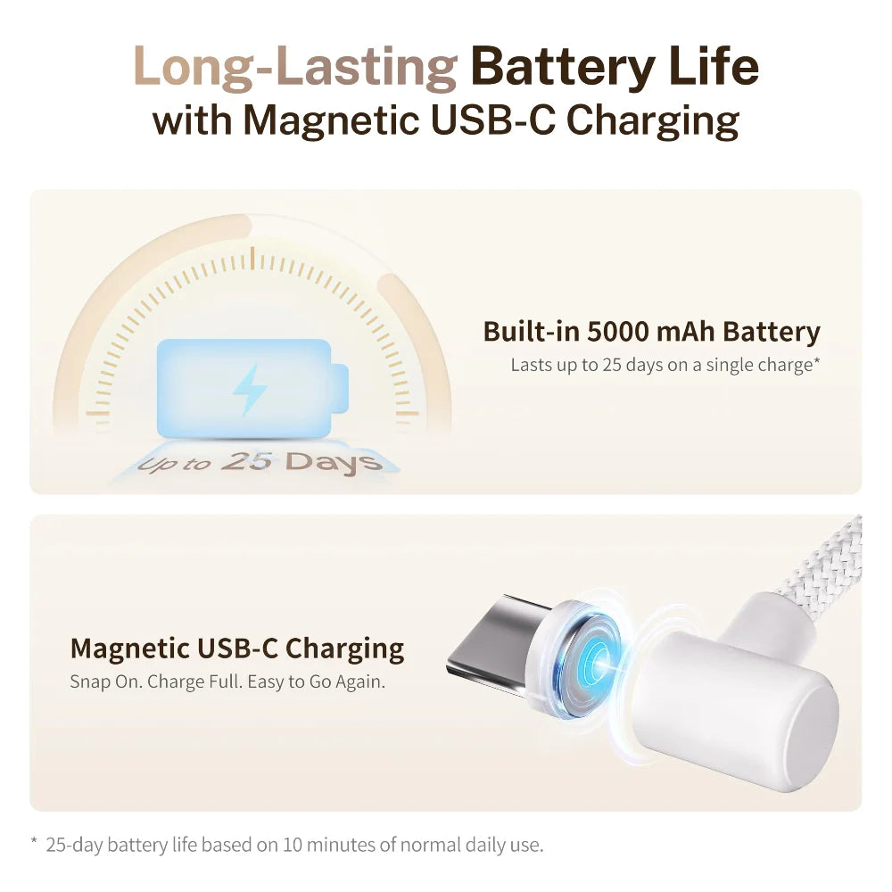 - Charging: USB-C Cable